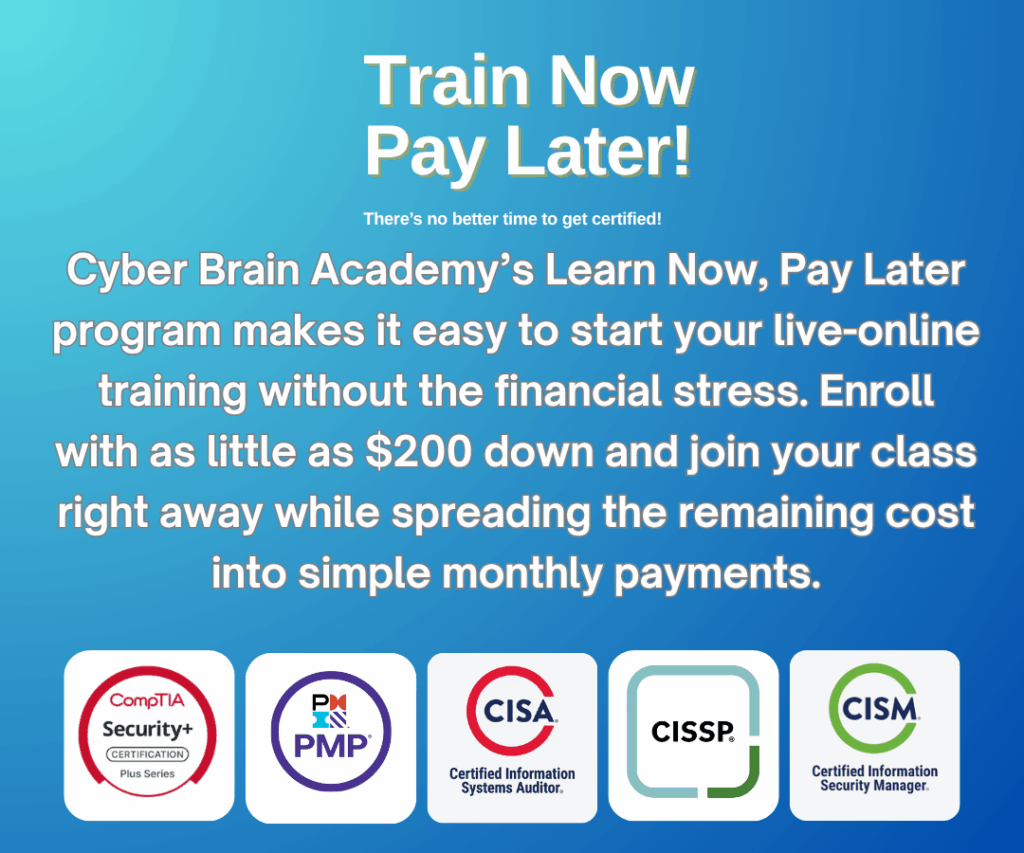 Stay ahead in your career with Cyber Brain Academy’s top-tier training programs for the most sought-after certifications in the industry. Whether you’re aiming for a career in IT, Cybersecurity, or Project Management, we have you covered with our comprehensive courses
